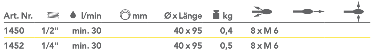 Schiebedüse ohne Rückstrahl. Zum Lösen von Hausverstopfungen oder Vorwärtstransportieren von gelöstem Material. 6x15°+1 x zentrisch.